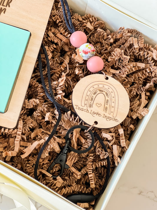 Teacher Gift Box with Sticky Note Holder and Beaded Lanyard