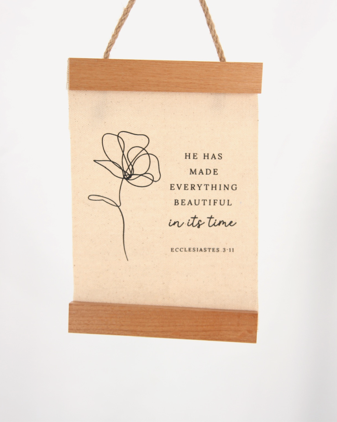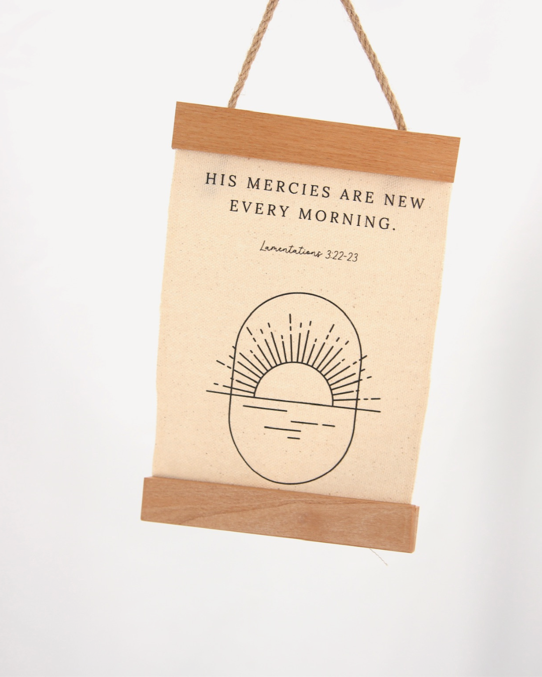 Our Scripture Canvas Wall Banners are designed to fill your home with encouragement and God’s Word. Each banner is printed on natural canvas, framed with warm wooden accents, and hung with a simple jute rope—creating a clean, timeless look that fits beautifully in any style of home decor.
